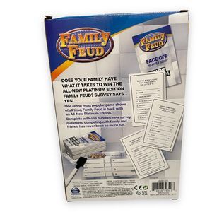 Get ready to have fun with Family Feud all new Platinum Edition board game! This complete game includes everything you need to play and enjoy countless hours with your family and friends. Featuring Steve Harvey as the host, the game is suitable for ages 8 and up and is perfect for any game night.