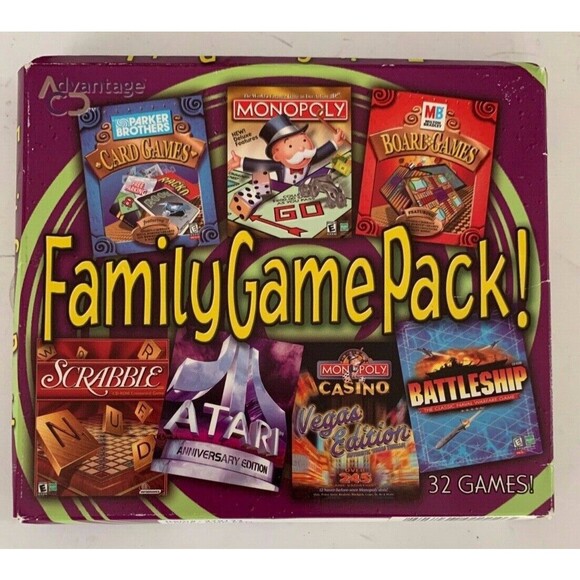 Family Game Pack! Advantage 32 Games for PC 7 Discs Atari Monopoly Casino