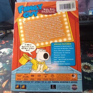 Step into the outrageous world of Quahog with this Family Guy: Volume Three DVD box set! Featuring more of the Griffin family's wild adventures, quick-witted humor, and iconic characters like Stewie, Brian, and Peter. This is a great addition to any adult animation collection or for fans of Seth MacFarlane’s cult classic comedy series.