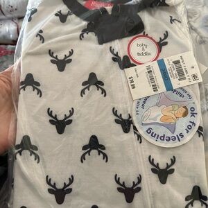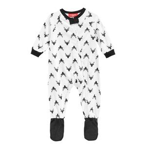 Family PJs Pajamas Baby Infant Toddler Deer Print Kids Zip Front Footies Matching Black White NWT New in Package