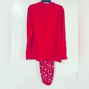 Bottom: hits at ankle; approx. inseam: 30-1/2"; flannel fabric; drawstring at elastic waist