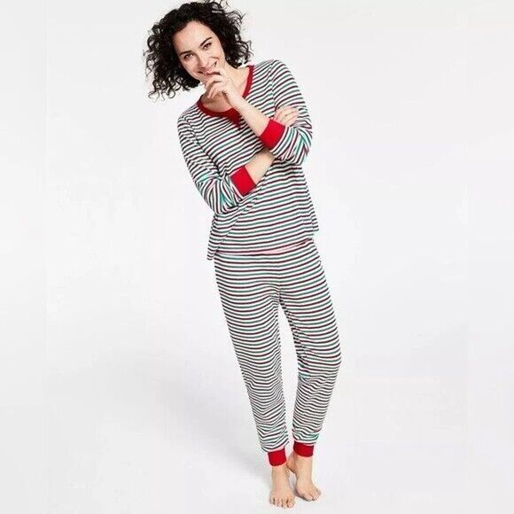 Family Pajamas Matching Women's Thermal Waffle Holiday Stripe Pajama Set small
