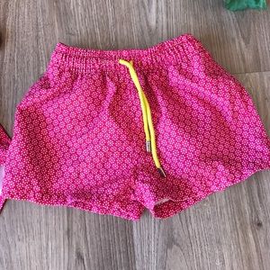Beautiful family matching swim set from Miami based brand Petit Limoi! Mom's swimsuit is size S, boys trunk is size 5 (but could fit a 4) and girls bubble suit is size 6-12m! Beautiful, soft fabric made with quality materials! Flattering fit for momma-includes bra padding! Ask any questions!