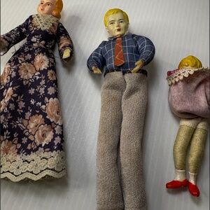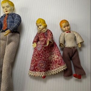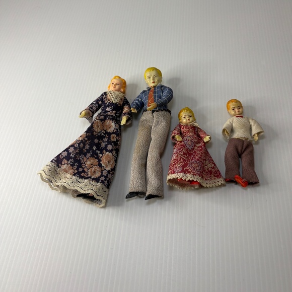 Family of 4 Vintage ThreadWrapped Caco Dollhouse Dolls Mom, Dad, Brother, Sister