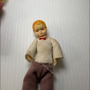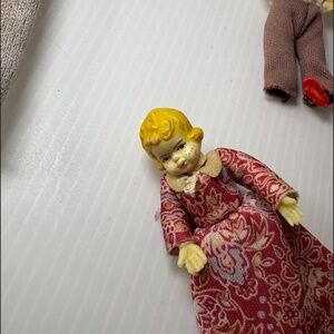This vintage Caco dollhouse doll set features a family of 4 thread-wrapped dolls, including a mom, dad, brother, and sister. The dolls are made from fabric and have a multicolor design, perfect for adding a touch of vintage style to your dollhouse. The set is an original and licensed reproduction, suitable for adult collectors and unisex babies and toddlers. The dolls are sold as a lot and are perfect for those who love to collect vintage style dolls. Add this unique set to your collection today!