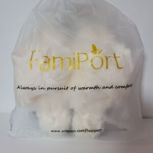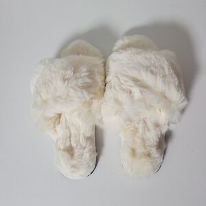 Famiport white fuzzy slippers