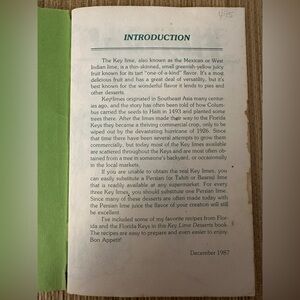 The "Famous Florida! Key Lime Desserts Cookbook" by Joyce Lafray Young, published in 1987 by Surfside Publishing, is a vintage nonfiction cookbook with delicious tropical recipes featuring the iconic key lime. The cookbook provides a glimpse into the culinary scene of the 1980s with its vintage charm and sweet dessert ideas, making it a valuable addition to any cookbook collection for those with a passion for classic Florida cuisine. Staining on some pages (see photos).