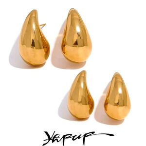 Yhpup 2023 Womens Jewelry Personalized Stainless Steel Water Drop Fashion Hollow Stud Earrings Gold Sz