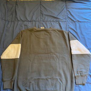 A heavy gray Minuteman pullover from Fan Cloth with a white horizontal stripe across the chest.