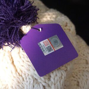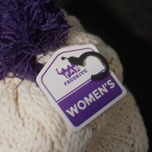 Fan Favorite Stocking Hat. Sweater. Clemson Tigers. Purple, Beige, and Orange with Tiger Paw on Front. Sweater with Pom Pom on Top. 100% Acrylic. New with Tag.