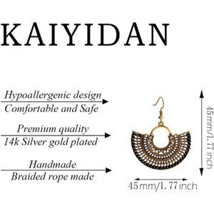 Fan Sector Shaped Braided Boho Dangle Statement Vintage Dainty Earring for Women