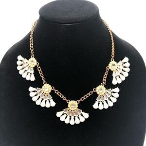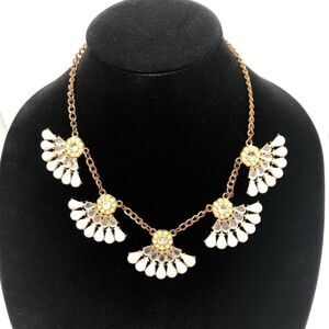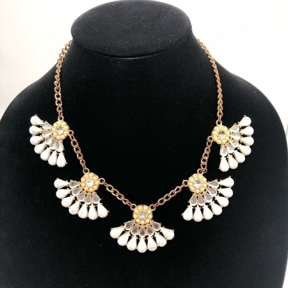 Fan Shaped Statement Necklace in Gold Tone chain and glass beads