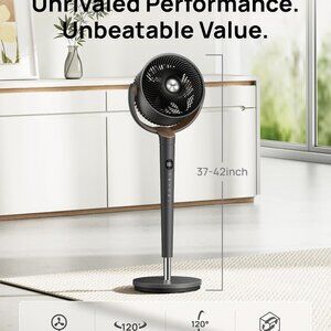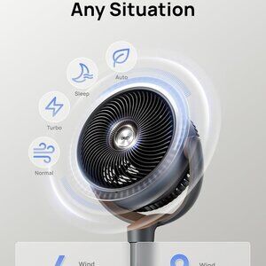 , : From circulating air around, to quiet powerful cooling, TurboPoly Fan for bedroom combines a pedestal fan, an oscillating fan, and an air circulator into one, which adapts greatly to all your needs. Don't get confused by its shape, the 9 wind speeds and 4 modes of the standing fan do much more than a fa