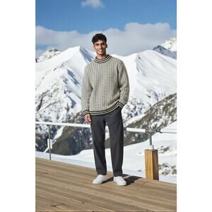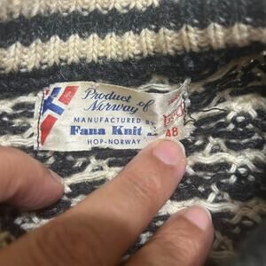 Fana Knit Norway Vintage Sweater Mens S Blue Beige Long Sleeve Chunky Warm