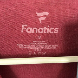 This is a fanatics, Boston College T-shirt with black lettering on a maroon T-shirt. It is a crewneck. New with tags. Hundred percent cotton.