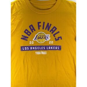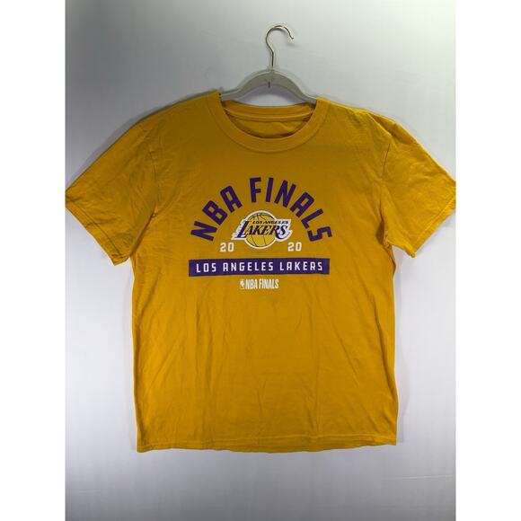 The product is a men's large Los Angeles Lakers tee shirt from Fanatics, featuring the iconic team and league branding. This basketball-themed shirt is perfect for any NBA fan looking to show their support for the Lakers in style. Made from high-quality material, this shirt is a must-have for any basketball enthusiast.