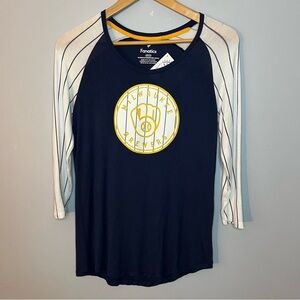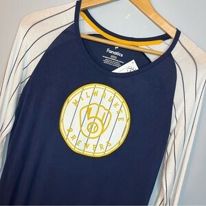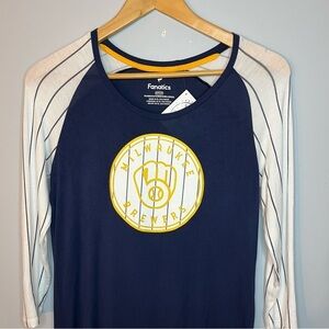 Fanatics Milwaukee Brewers MLB Iconic Pinstripe Raglan 3/4 Sleeve Shirt Sz S NWT