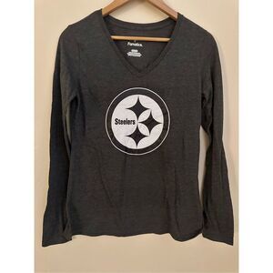 Fanatics NFL Pittsburgh Steelers Gray and White Womens V Neck Top Size Small