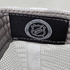 tags: adjustable snapback, mesh trucker hat, hockey team hat, sports fan hat, breathable cap, curved bill hat, team logo hat, lightweight hat, fan gear, polyester hat, gray navy hat, NHL apparel, Washington Capitals hat