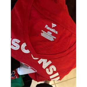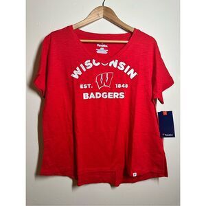 Fanatics Wisconsin Badgers Red V neck Game Day T Shirt Size Large. New with tag.