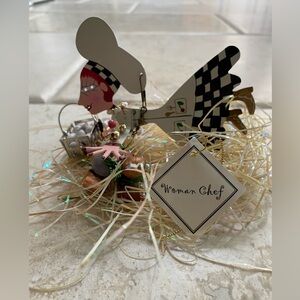 Fanciful Flights Silvestri Karen Rossi WOMAN CHEF Ornament. Excellent preowned condition! Measures approximately 6” by 3”. See photos for details. Metal ornament with dangling charms.