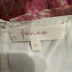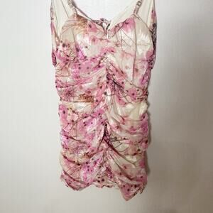 Fanco Pink Floral Ruched Mini Dress Small Ruffle Tie Front Cottagecore Fairy