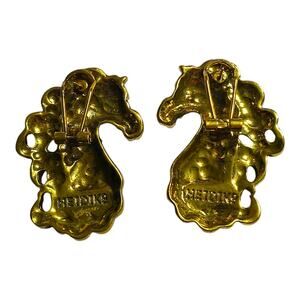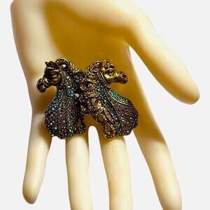 Stunning Antiqued Bronze Horseheads that look towards the face, not in the same direction. As to framing the wearer. Sparkling iridescent colors.