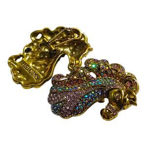 Fancy Antiqued Bronze Round Multi Color Crystal Horse Head Earrings