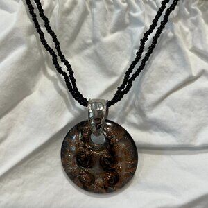 Fancy Black beaded Necklace with large Black/Gold/Silver designed pendant