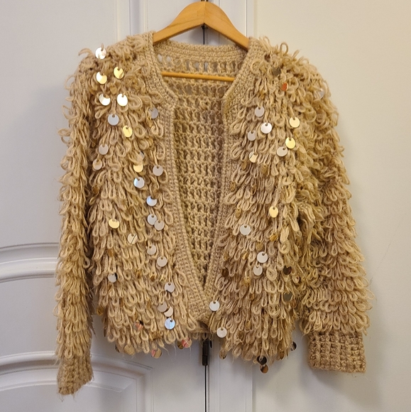 From Korea, unsure of brand, beige/tan knit cardigan with spangle decorations