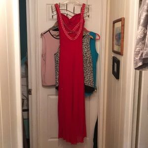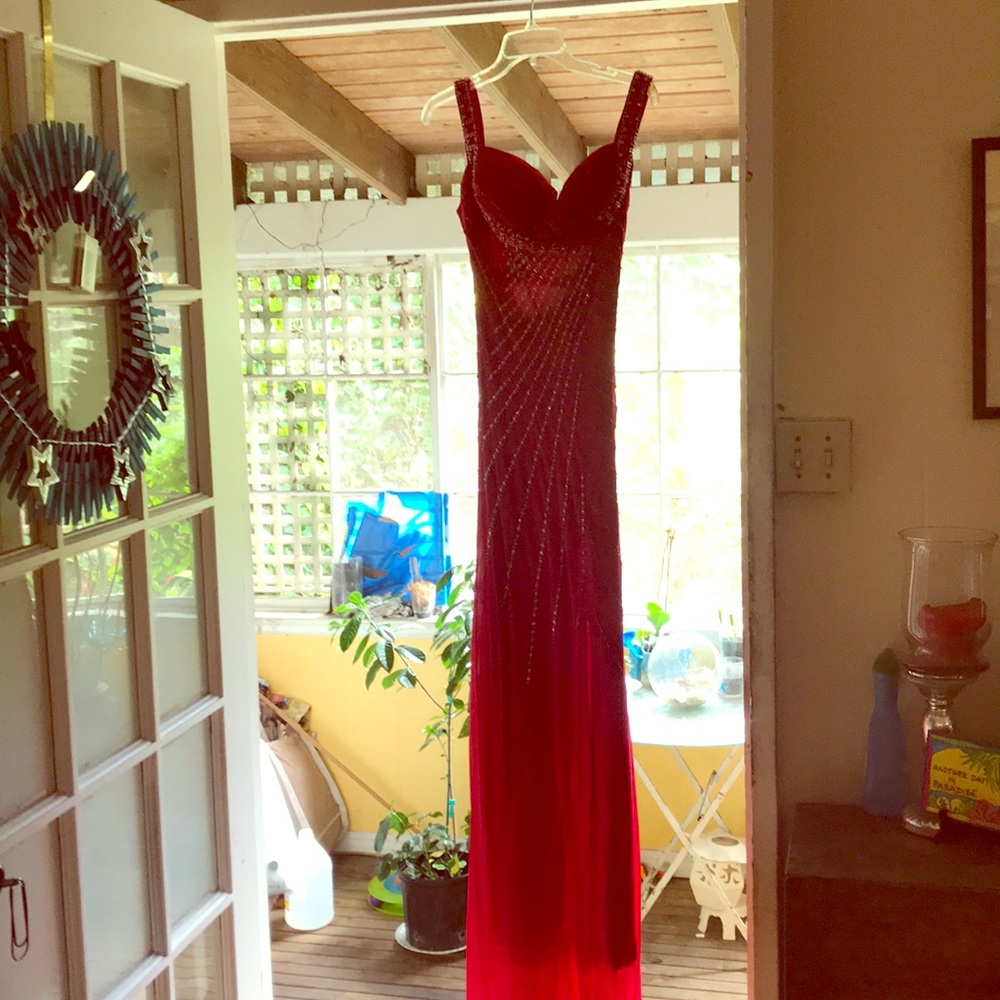 Beautiful red dress. Looks amazing on. Has a slit on left side by leg dose not come up high. Has beautiful sequence design. In amazing condition. Only used once.