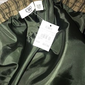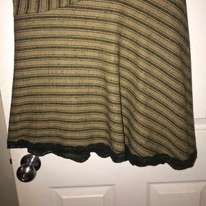 This NWT skirt is fashionably designed with parallel lines strategically placed in many directions. Rugged to the touch yet lined with smooth polyester and hunter green lace trim. So cute! Never been worn. Cato Size 26/28W