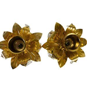 Fancy Hollywood Gold Tone Candlestick Holder Set Chandelier Crystal Dangling Pri