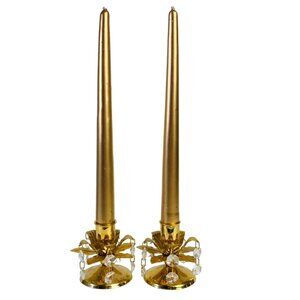 Transport yourself to an era of elegance with these vintage tapper candle holders. The delicate dangling crystal ornaments catch the light beautifully, creating a mesmerizing ambiance.