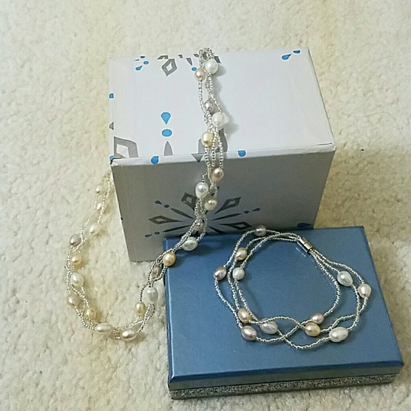 Brand new/ never used. Beautiful statement piece. white, light yellow, and light pink pearls. has magnetic clasp