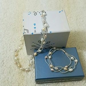 Fancy Multi Tone Pearl Necklace and Bracelet Set