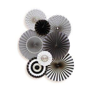 Fancy Party Fans Rosette Pinwheels Black & Ivory/White, (6) Fans