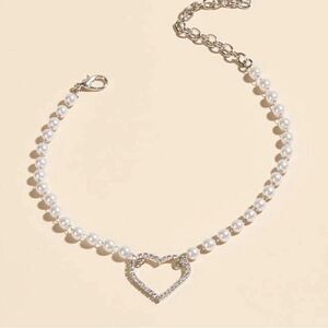 Fancy Pearl Rhinestone HeartbDog Bling Necklace Collar