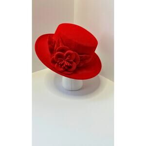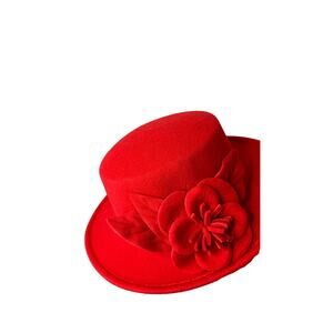 Fancy Red Women's Floral Acrylic Fedora Stylish Western Bucket Hat Warm