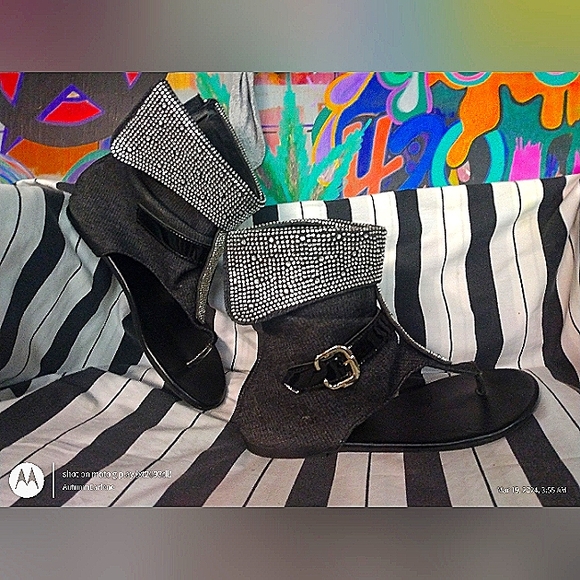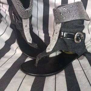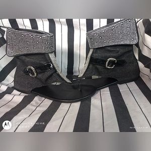 Blinged out ankle high sandals size 8. Brand new!! never worn! would look great w jeans or a dress- anything!! Very sexy but tasteful!!