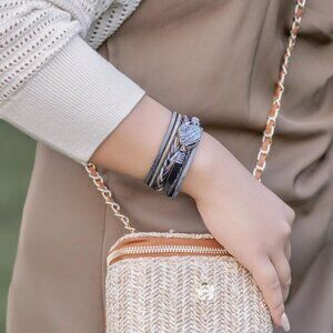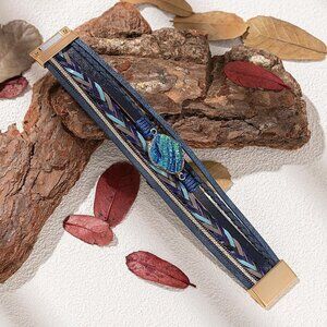 ✨ Fancy Shiny Leather Bangle Bracelets Women Blue Boho Resin Stone Wrap Jewelry