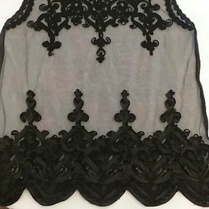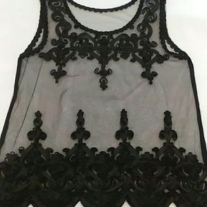 🕸Very beautiful and delicate tank top. See-through mesh type material. Bottoms details are identical in front as in back. Top detail is only in front. ( Small unnoticeable hole as shown in 4th picture. ) Very difficult to really see when worn.🕸