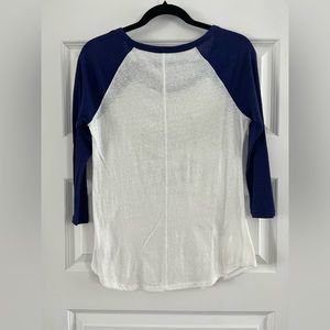 “Fancy That” Baseball Style Tee with dark purple sleeves