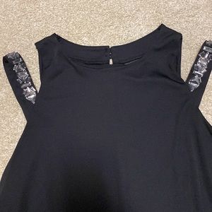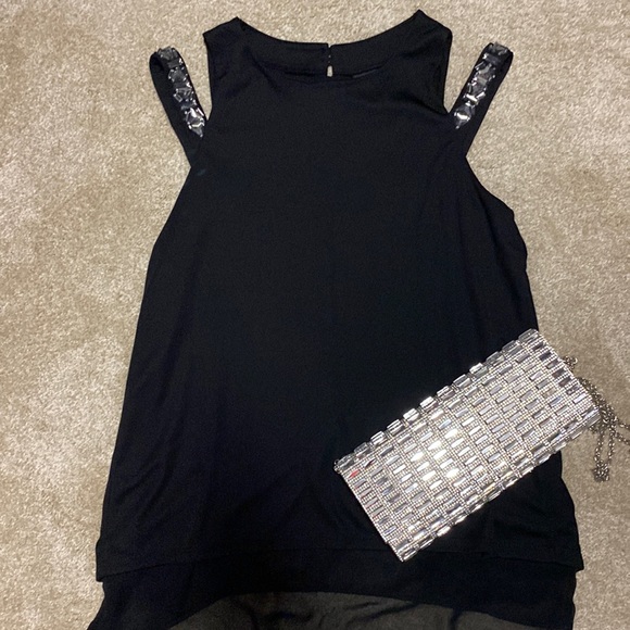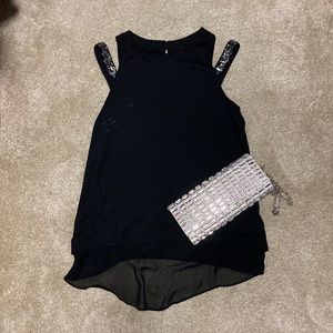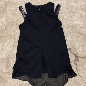 Tank top with stone embellished straps. Has a chiffon underlay which is longer in the back.