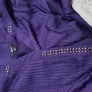 New without tag. Dark purple tunic blouse with brushed gold accents Sleeves can be snapped up to make shorter. Very flowy longer length. (116)