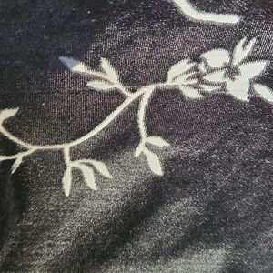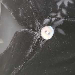 Nehru style collar. Long sleeves, 8 button. 16" side slits. 20" pit to pit, 25" pit to hem. Black velveteen with sheer designs. Very lightly used. Smoke free home.