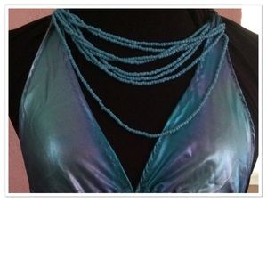 Aqua metallic bikini top with turquoise beads **item can be custom made, ships within 5 business days