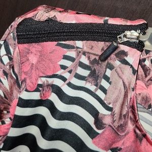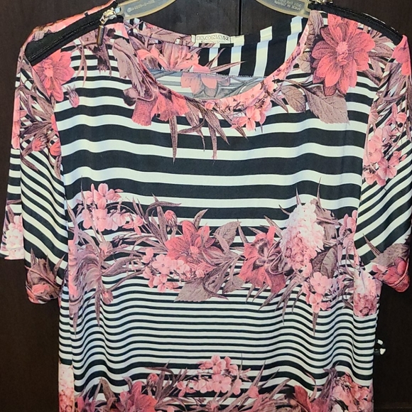 Plus size - stretch - 2X - floral/black and white stripes - zipper styled shoulders