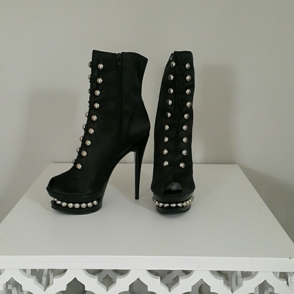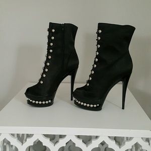 Fancy black booties silky with very beautiful details very adorable i bought them for my bday but never got to wear them so brand new never worn
