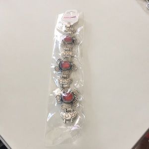 Three red circled stone with silver designing in it. Brand new but no tag with it